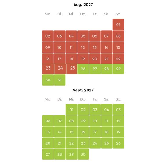 Belegungskalender 2026 & 2027